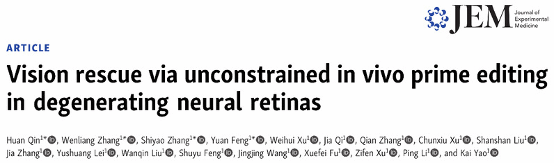 Vision rescue via unconstrained in vivo prime editing in degenerating neural retinas,Journal of Experimental Medicine, 2023; 220(5): e20220706