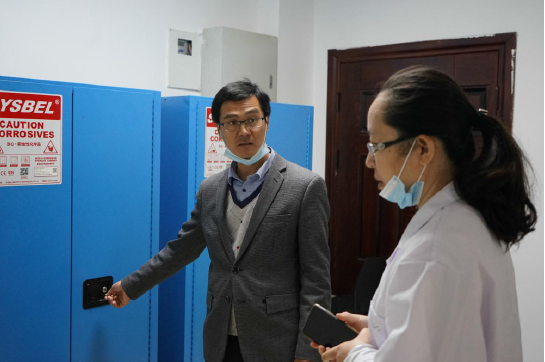 党委副书记罗刚同志细致查看实验室设备运营情况